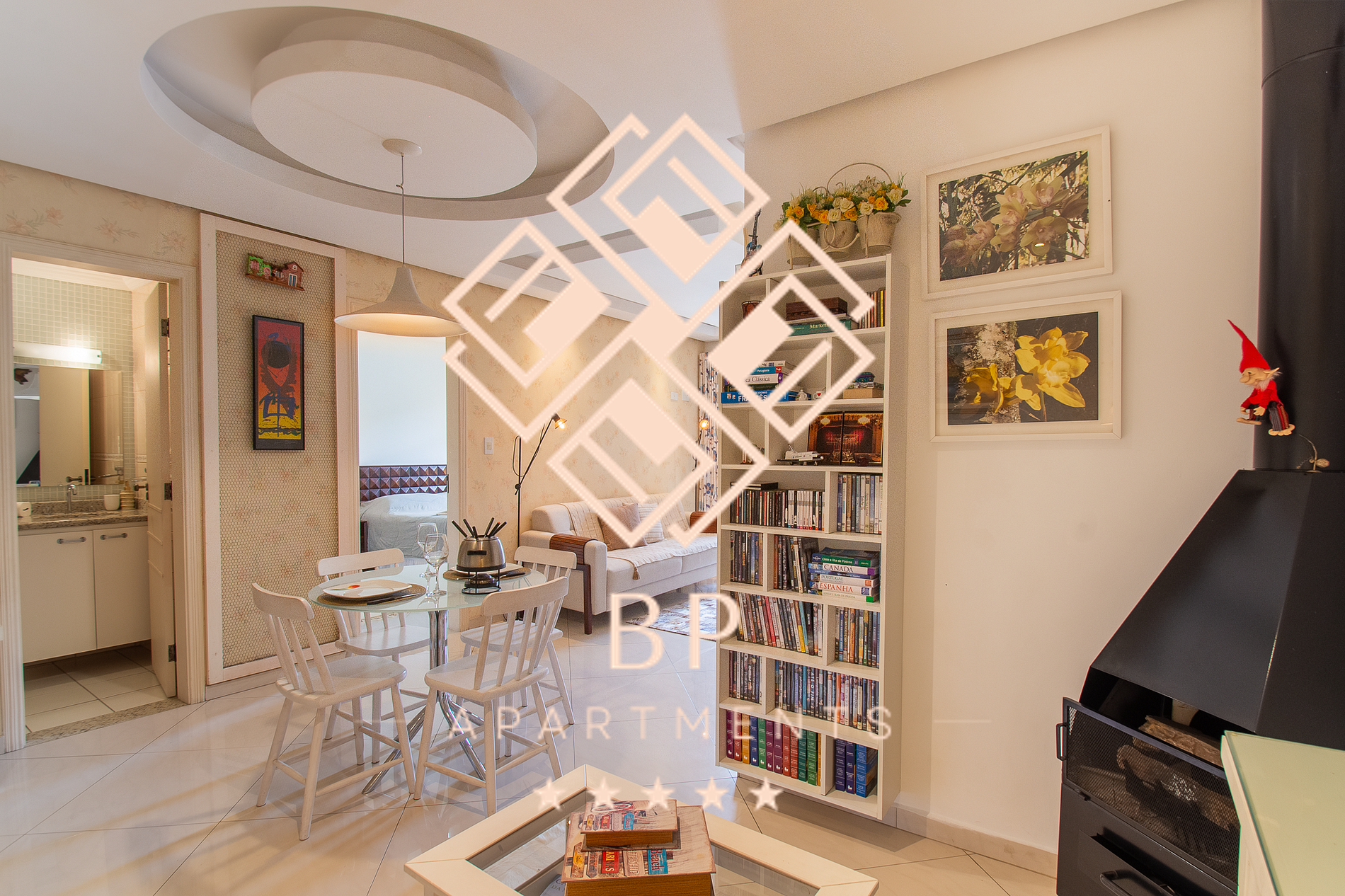 Aproveite um bom vinho na lareira ou desfrute de um bom filme na modernidade da TV Smart ou aproveite os clássicos disponíveis em DVD do nosso acervo.